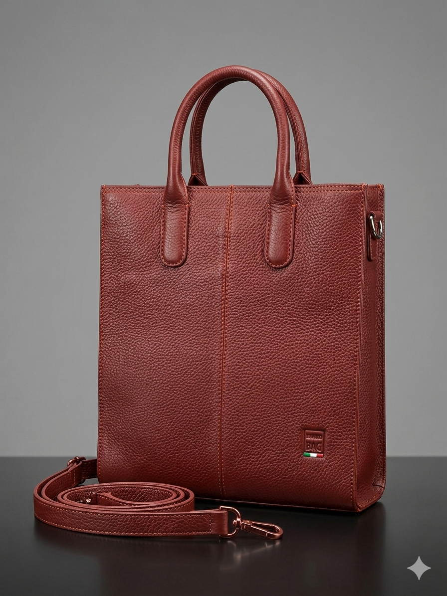 Colore: Una tonalità calda di marrone/terracotta che si abbina perfettamente sia a outfit formali che casual.