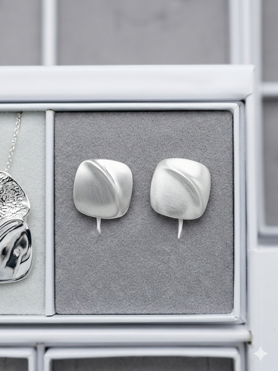 Direttamente dalla collezione Scintille di Alex Arte, questi orecchini a lobo uniscono un design scultoreo alla sicurezza di una lega anallergica nickel free. La preziosa placcatura in argento con finitura satinata dona una luce soffusa ed elegante, perfetta per chi cerca un accessorio distintivo e moderno.