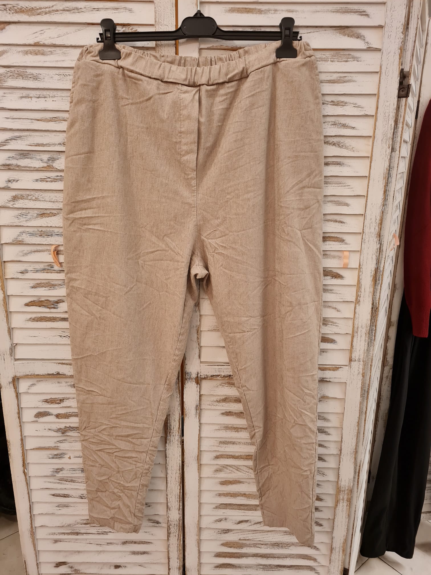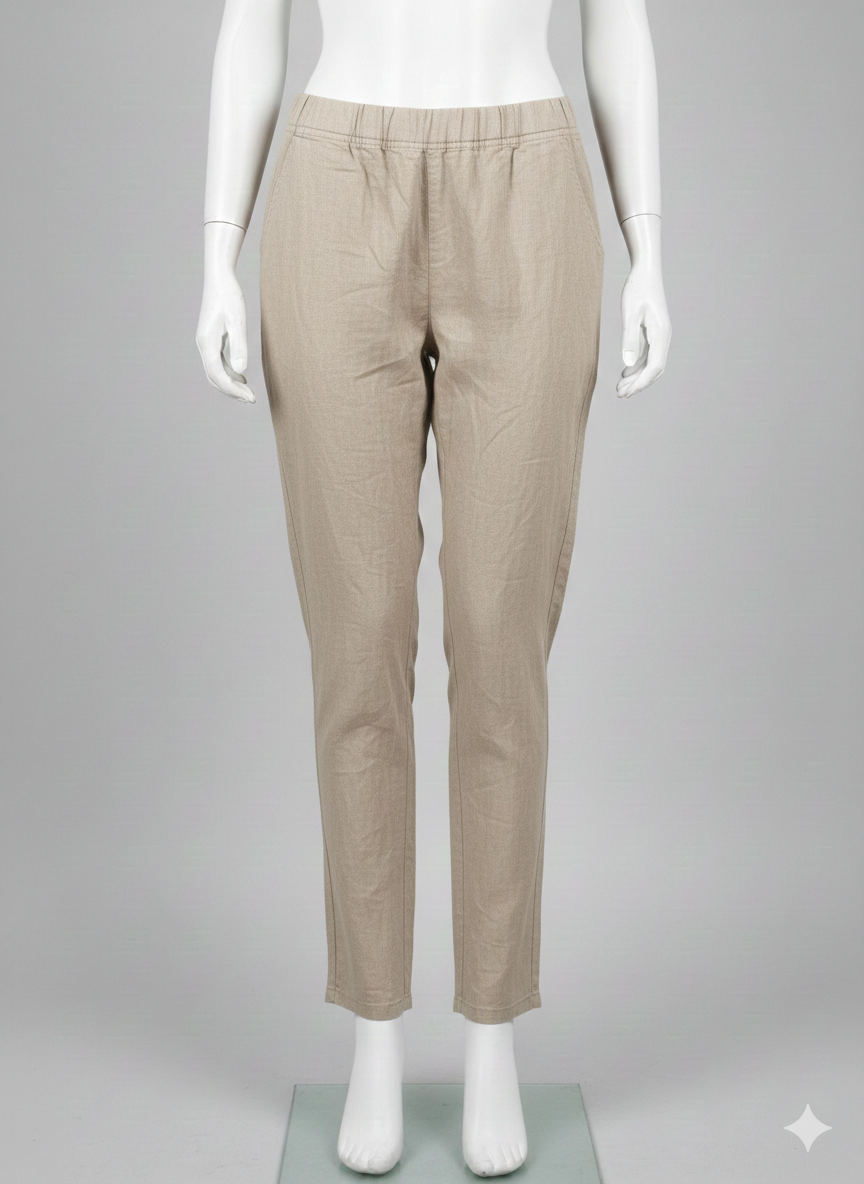 Il design si distingue per la pulizia delle linee: la vita interamente elasticizzata elimina bottoni e zip, garantendo un effetto “pancia piatta” e una comodità assoluta per tutta la giornata. La gamba scivola dritta con una leggera rastrematura verso la caviglia, rendendolo il compagno ideale sia per lunghe ore in ufficio che per il tempo libero.