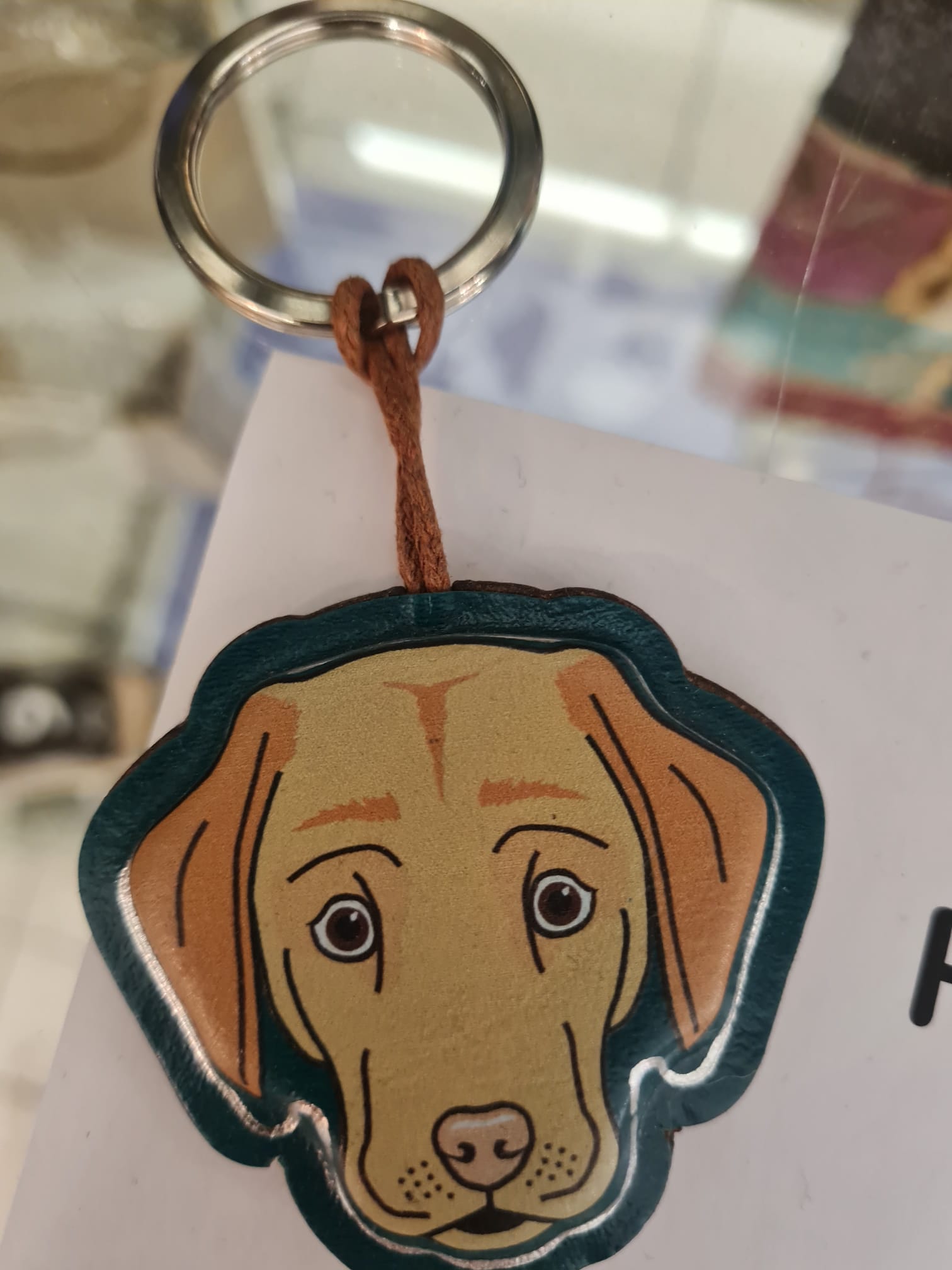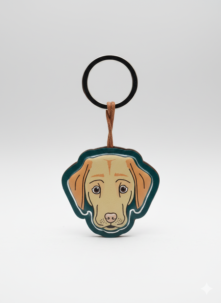Questo portachiavi del brand Pratiko celebra il mondo degli animali con un design sagomato e colorato. L’accessorio riproduce il volto di un cane (razza Golden Retriever/Labrador) attraverso un’applicazione in pelle multistrato.